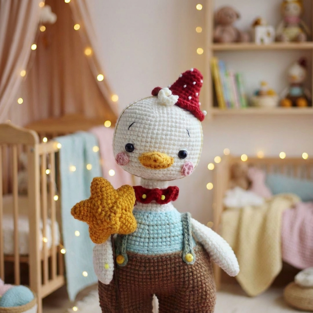 Amigurumi Crochet Pattern (Goose with Cap, Sweater & Star Accessory)
